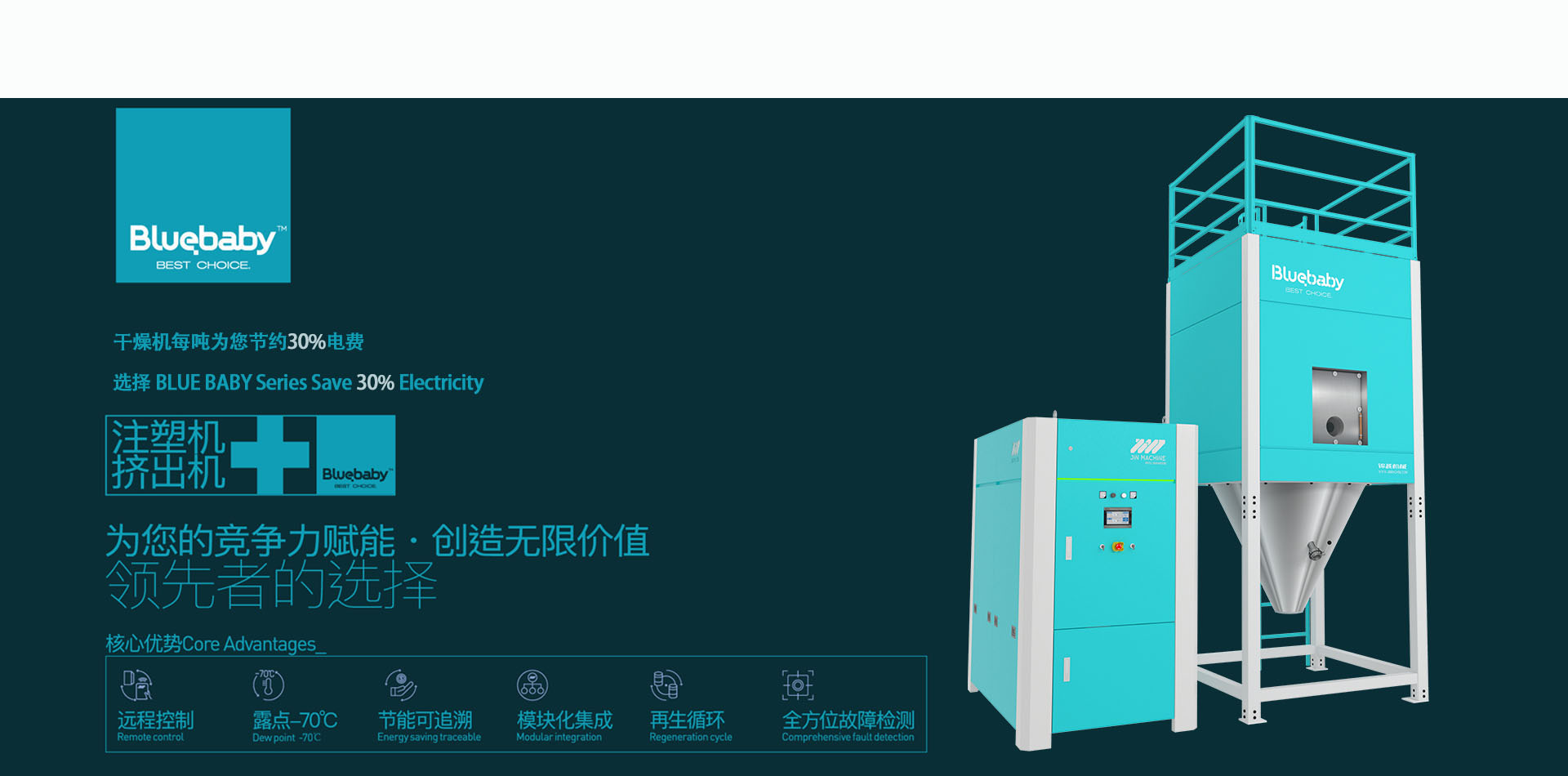 張家港市錦越機械有限公司是一家針對塑膠制品加工成型的輔助設備生產廠家,主要致力于除濕干燥機、結晶機、上料系統及中央集中供料系統的研發、生產和銷售。產品主要用于擠出、注塑,吹塑等塑料加工機械。在聚合物的除濕、干燥處理和輸送方面擁有豐富的經驗。